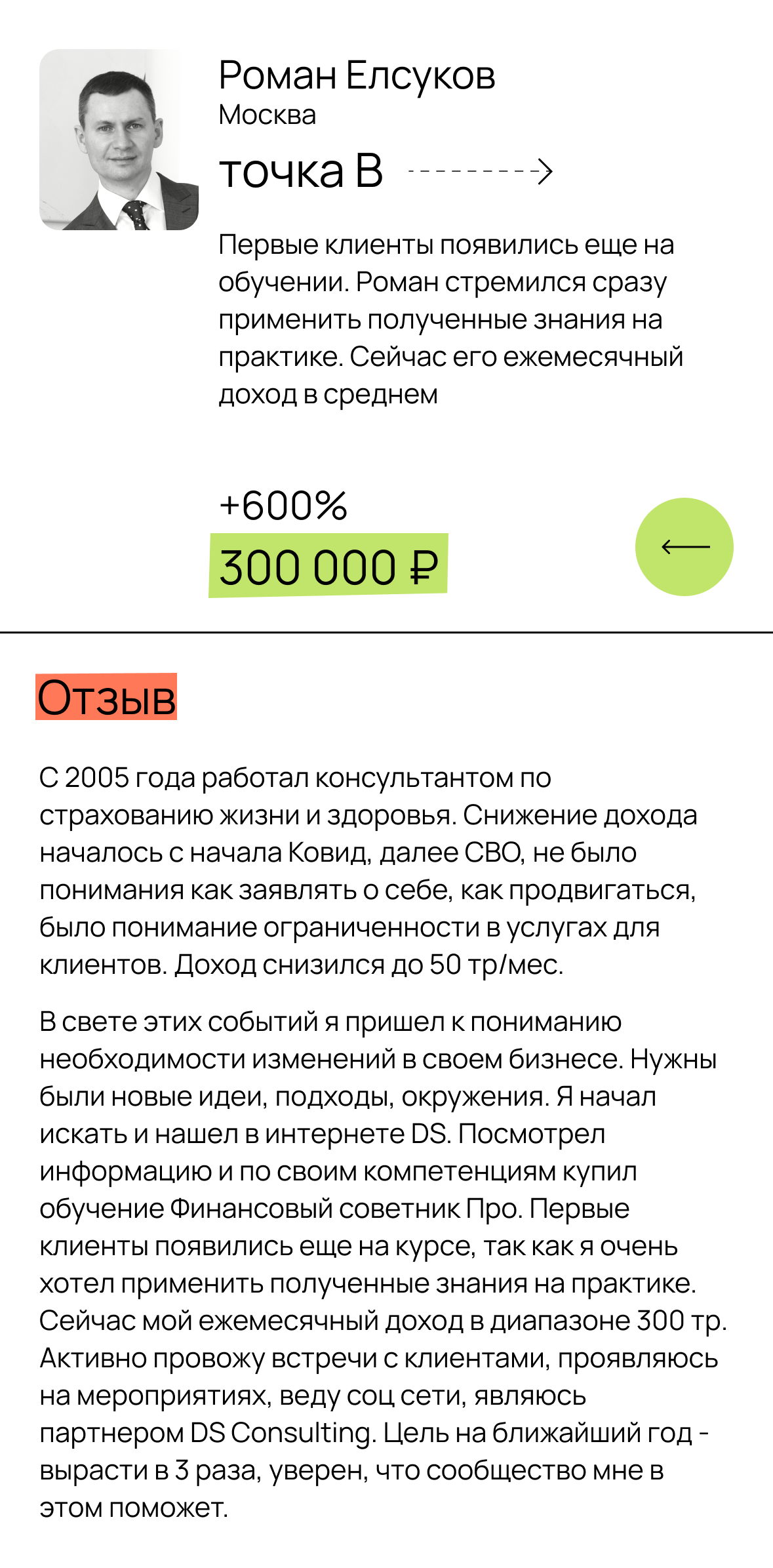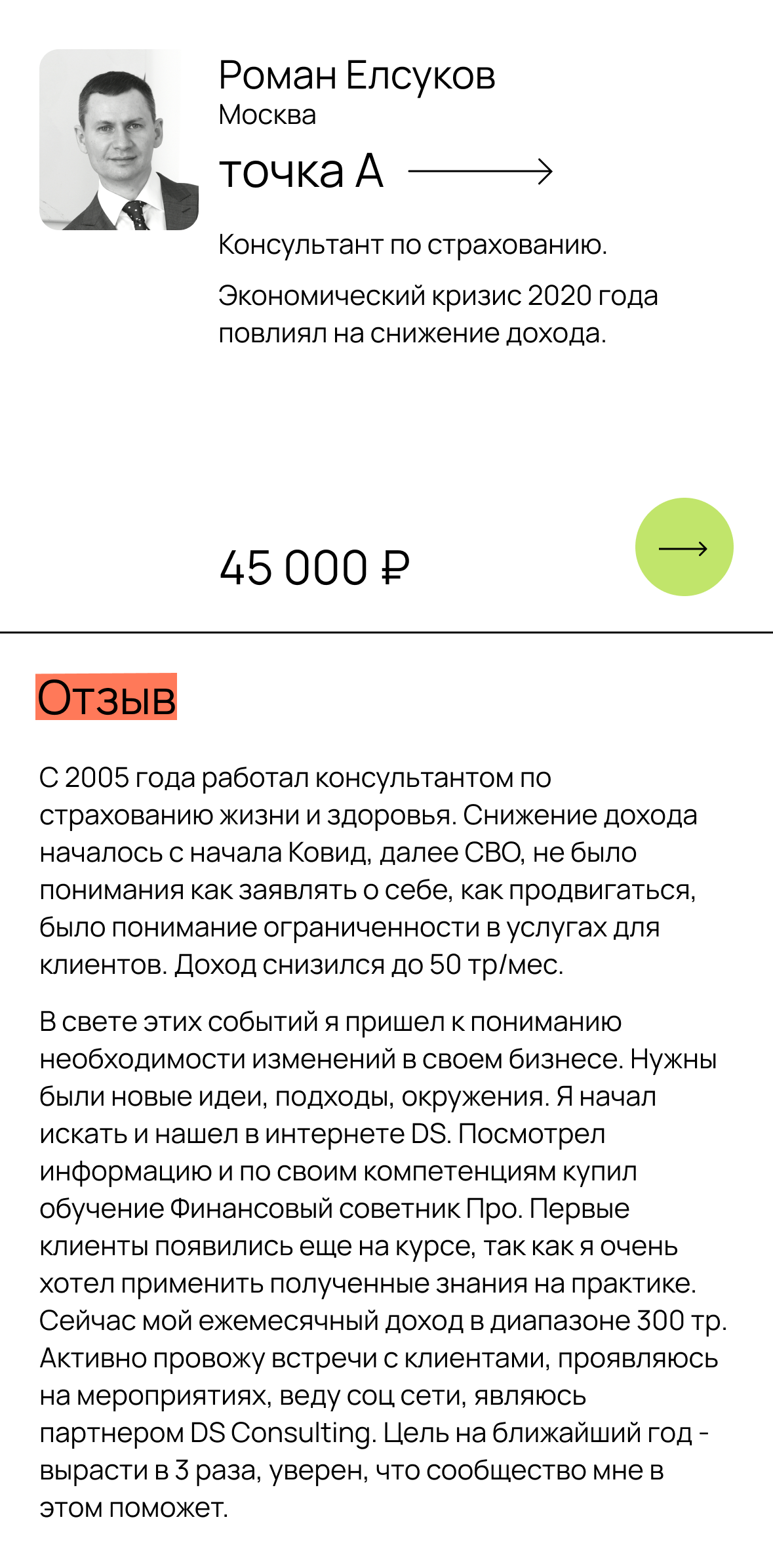 Сооснователь компании DS Consulting Автор и методолог программ: «Создание капитала», «Эволюция инвестора» «Школа финансовых советников» Инвестор с 2017 года Участник наставничества Кутергина и Гуриновича С нуля построил компанию с оборотом 200 млн + Обучил 1000+ финансовых советников Автор телеграм канала "Академия финансовых советников"